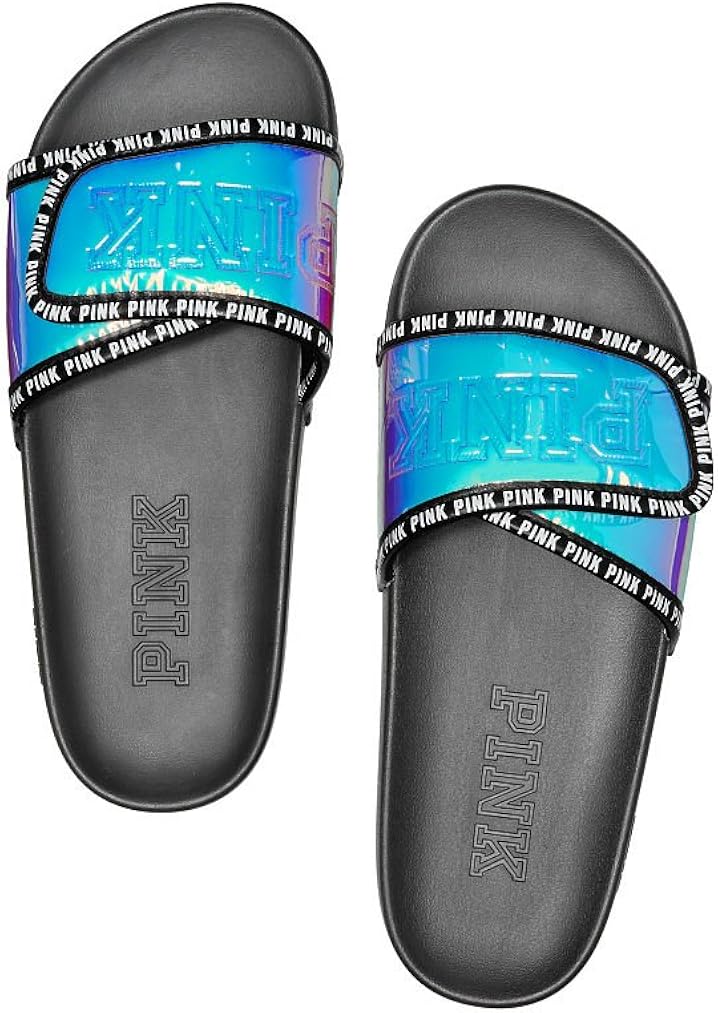 Pink Iridescent Glitter Victoria S Secret Single Strap Slides Sandals Size Us 7 Regular M B Pink Sandals Pink Slides Victoria Secret Shoes